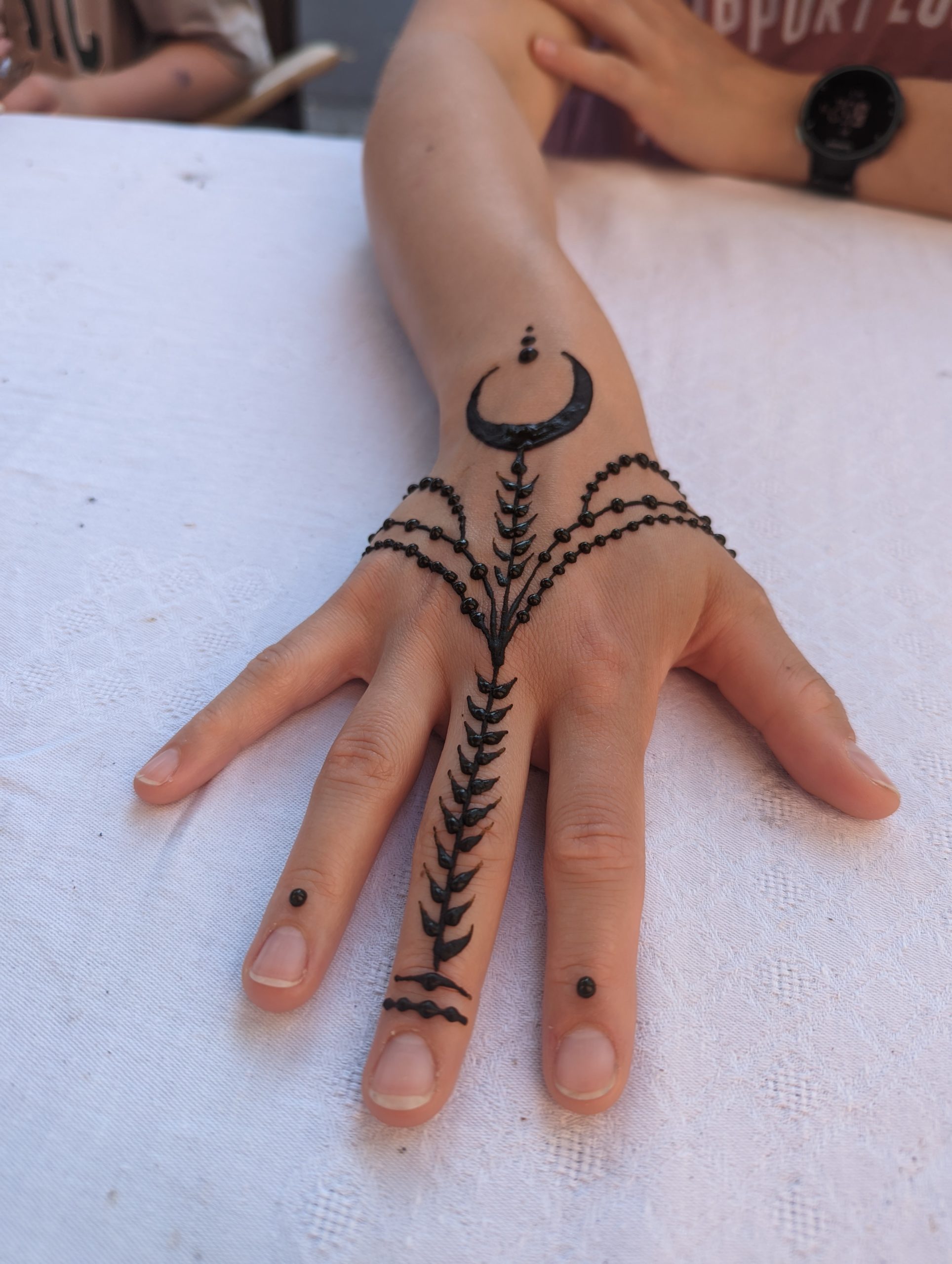 berber-inspired henna tattoos, acrylic art and dreamcatchers
